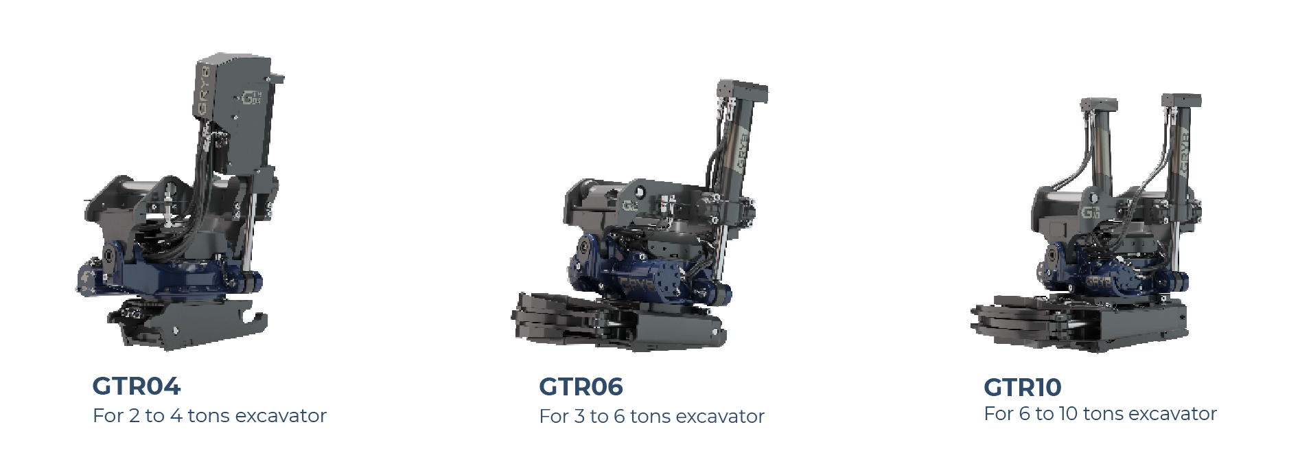 The GRYB tiltrotator is an extension of the arm and it allows you to tilt and/or rotate any bucket/attachment you connect to it. The perfect attachment for your compact excavator! The tiltrotator features a grease-lubricated gear case, constant 360° rotation, and 40° tilt in all directions. The tiltrotator can be mounted on the quick coupler or directly on the excavator's arm. The ease of maneuvering the tiltrotator using a joystick and rocker switch allows the operator to easily and efficiently perform advanced and precision work without having to move the machine. It also makes the work environment safer, both for the operator and for people working near the machine. The GTR tiltrotator is equipped with double-acting cylinders for tilting.